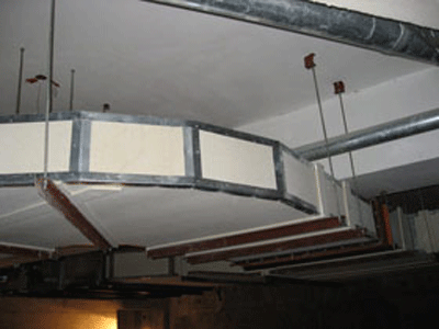 00001. 吊桿間距:按厚1.2mm鐵皮計算,每平米質(zhì)量9.36kg吊桿間距3000mm,金邦硅酸鹽防火板風(fēng)管每平米質(zhì)量13.92kg吊桿間距1220mm。承受載荷能力大于安全值。